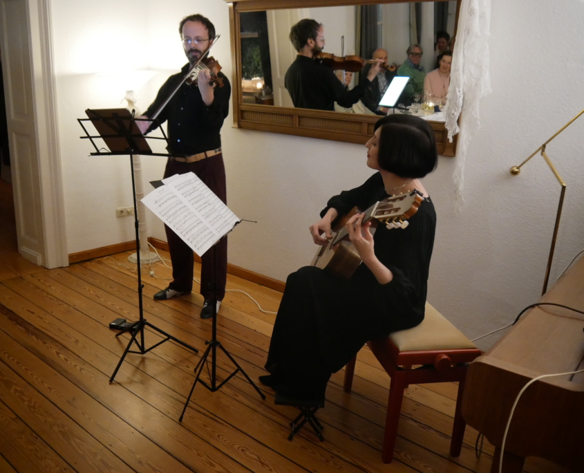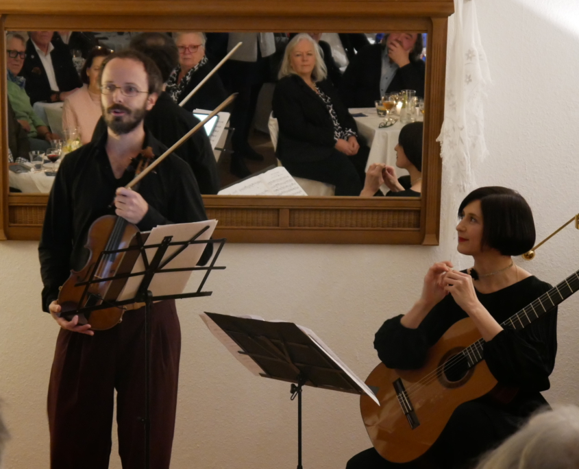 Der Tango scheint in der Region viele Freunde zu haben, denn der Saal war bis zum letzten Platz gefüllt, die Warteliste lang. Die beiden Musiker, die zuvor noch nie in der Villa Weingärtner gewesen waren, schwärmten hinterher über die hervorragende Akustik und das hoch konzentrierte Publikum.